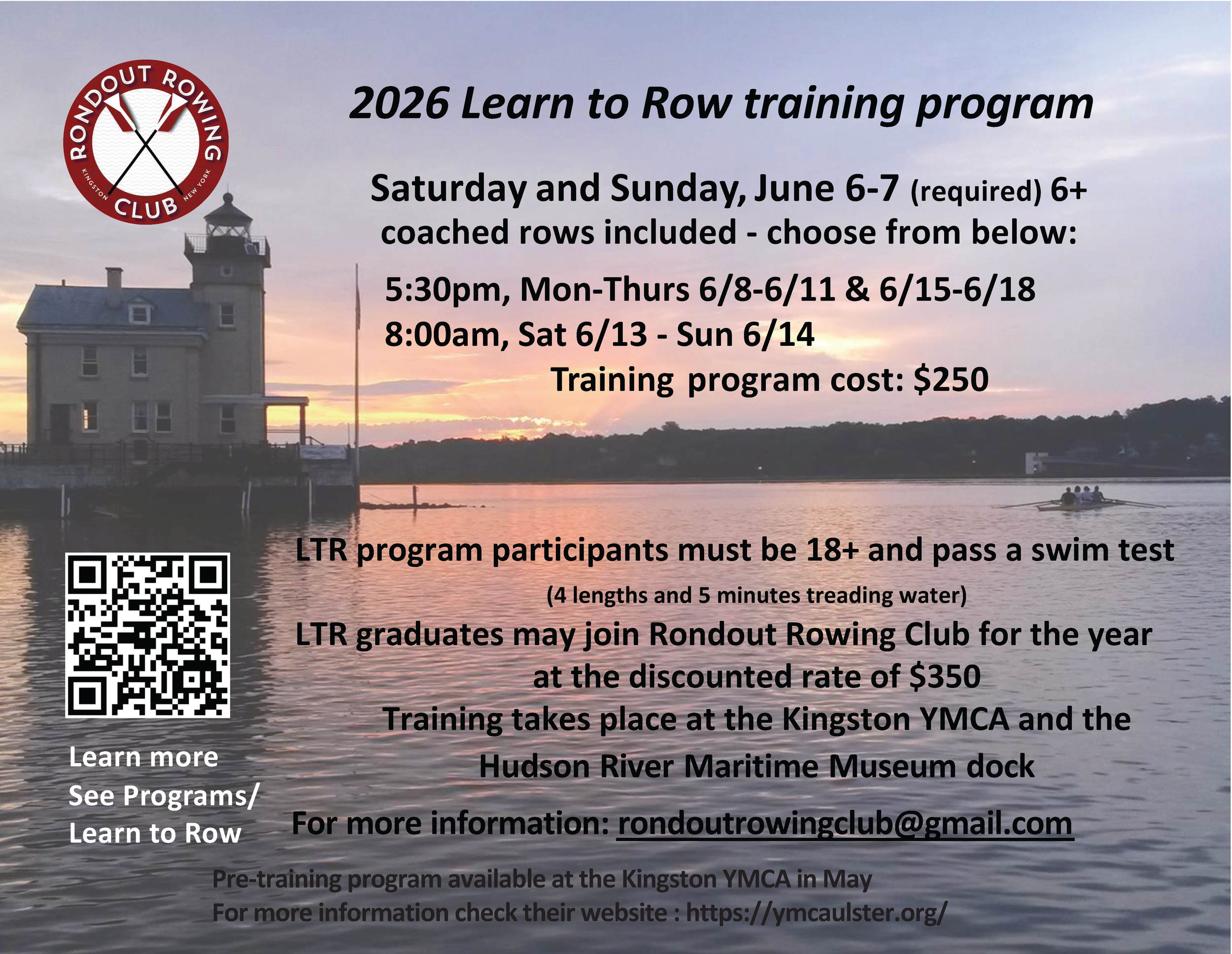 The 2026 Learn to Row program will be held Saturday and Sunday, June 6-7. Fee: $250. Deadline to register: Thursday June 1st.